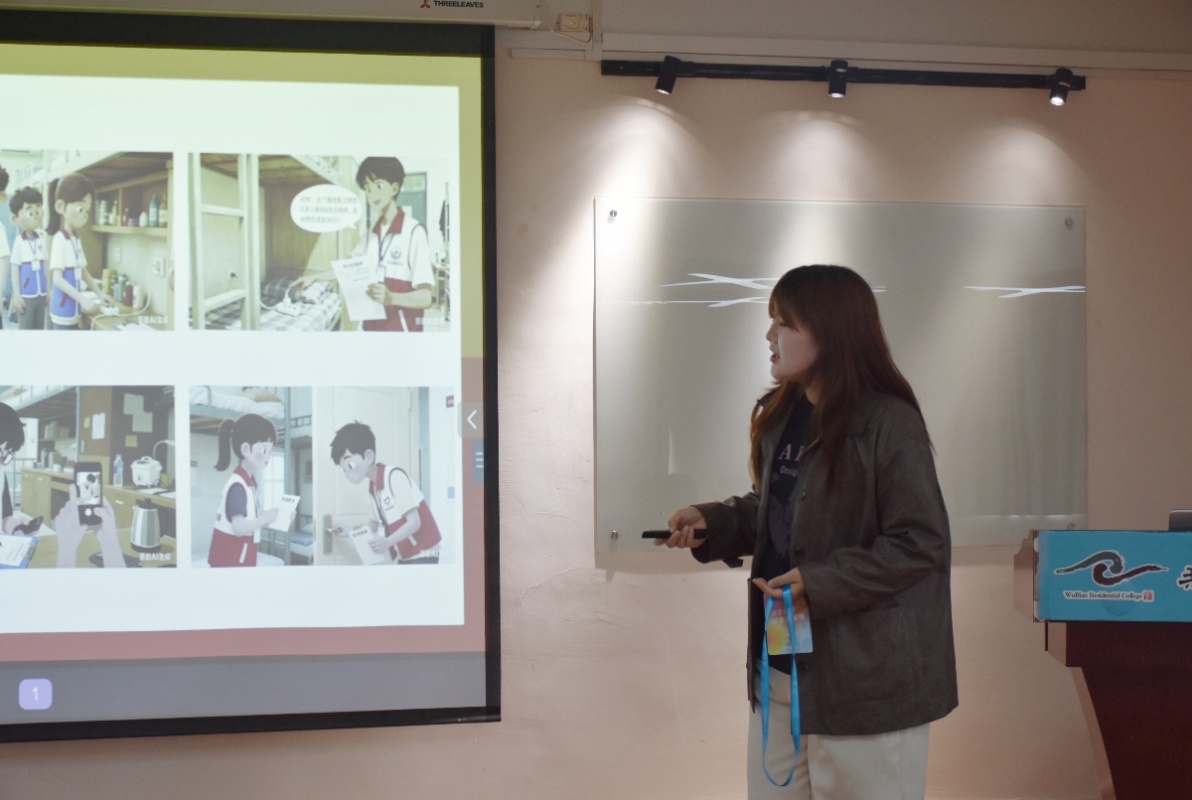 为建立正向激励机制,引导学生共建优质宿舍环境,武彦老师在活动中还介绍了往届 “星级宿舍”的评选成果,并详细解读了2025-2026学年第一学期的申报规则。据悉,本次“星级宿舍”的评选维度涵盖宿舍安全、内务秩序、环境卫生等基本内容,同时纳入成员参与公寓文化建设活动的次数及其学业表现,以对宿舍的整体素质进行多维度、综合性的评价。