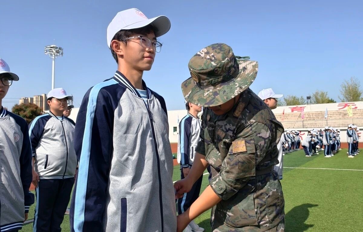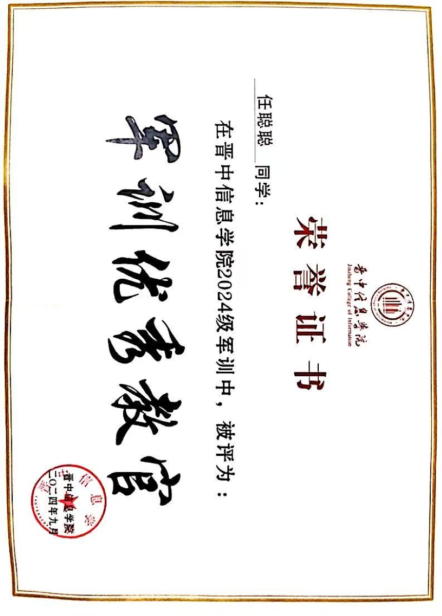 怀着对军旅生活的向往,他加入了校国旗护卫队。三个月的军事训练,从队列指挥到军事理论,他不断打磨自己,最终通过严苛考核。每一个动作都被他拆解锤炼——手臂的角度、转身的力度、目光的方向,都在无人注视的晨昏里雕琢了千百回。在军训训练场上,他身姿挺拔,调整肩线、扶正帽檐,用行动诠释“责任”的重量。他严肃却不失温度,常提醒同学“及时补水”,主动关心不适的同学——责任于他,始终是温暖的守护。