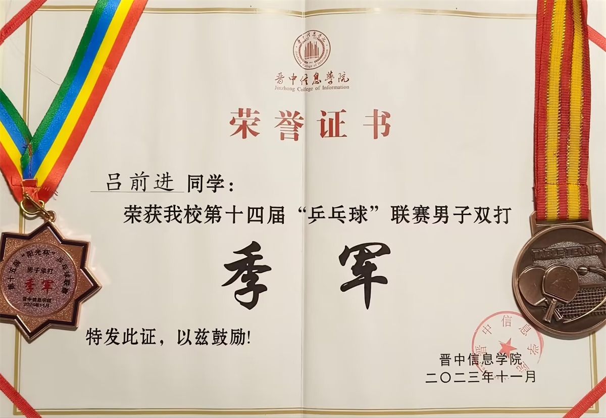 作为校乒乓球队的一员,他专注打磨每一次挥拍。在“阳光杯”赛场上,他斩获男子单打冠军、季军及双打季军——奖牌的分量,不只是技术的证明,更是攻防对峙中沉淀出的沉稳心性。