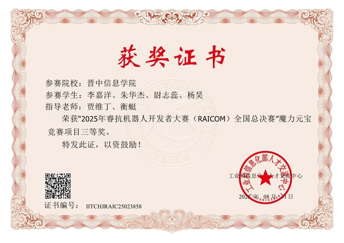 在不断提升自我的同时,他也积极致力于营造学院的科创氛围。在晋中信息学院首届“智创启航杯”大学生专业创新与实践挑战赛中,他担任 EDA 赛道负责人兼裁判,通过以赛促学的方式,带动更多同学投身创新实践之路。