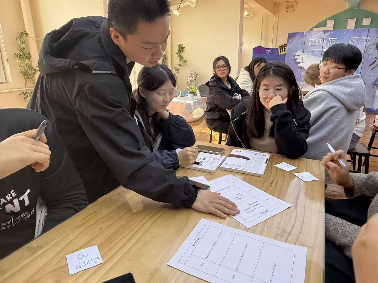 10月20日,国贸(专升本)2502在无边书院办“悦纳自我,温暖同行”活动。活动开始身份盲盒+情绪搭子的环节便点燃了现场。每位同学填写两张卡片:一张“隐藏卡”,一张“近期小情绪卡”。匿名收集后主持人将两张卡牌重组,形成一个个充满反差感的情绪搭子组合。当给猫咪喂饭的隐形爱心人与被论文逼到崩溃的学术人被爆是统一身份时,现场爆发出阵阵笑声。接下来的“靠谱建议接龙”更是将活动推向高潮。同学们不再是悄悄面对压力的孤勇者,而是变成了彼此的智囊团。这种将情绪宣泄转化为问题解决的方式,让心理压力有了实实在在的落地感。