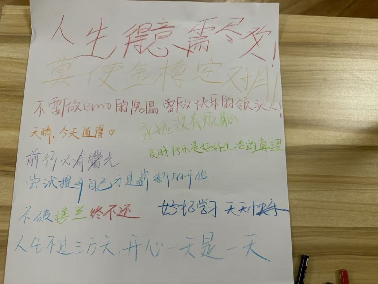 这些心理健康主题活动,不仅为同学们提供了释放情绪、交流心声的平台,更凝聚了班级的向心力,愿活动中收获的理解与勇气能化作同学们未来生活里的心理铠甲,在未来的成长路上与情绪和谐共处,把日子过成自己期待的模样,让心灵常伴晴光。
