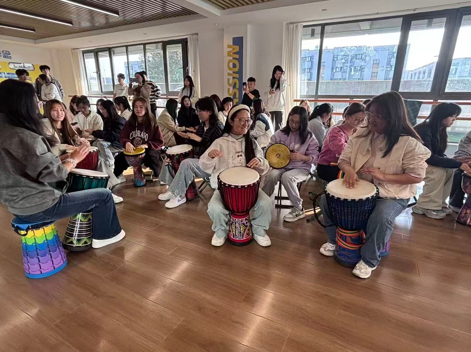 10月17日15:00,会计2502班在毣谷书院开展“击鼓・焕新声——一场文明的‘破圈’行动”。导师阐释鼓乐与修身、情绪管理的联系,借案例讲节奏对情绪的影响。破冰律动后带领同学们学习非洲鼓基础音色和节奏型,节奏对话让大家体验到了非语言的默契,最终合奏动感曲目,破除社交壁垒,每个人在集体中都是独一无二不可或缺的鼓点。