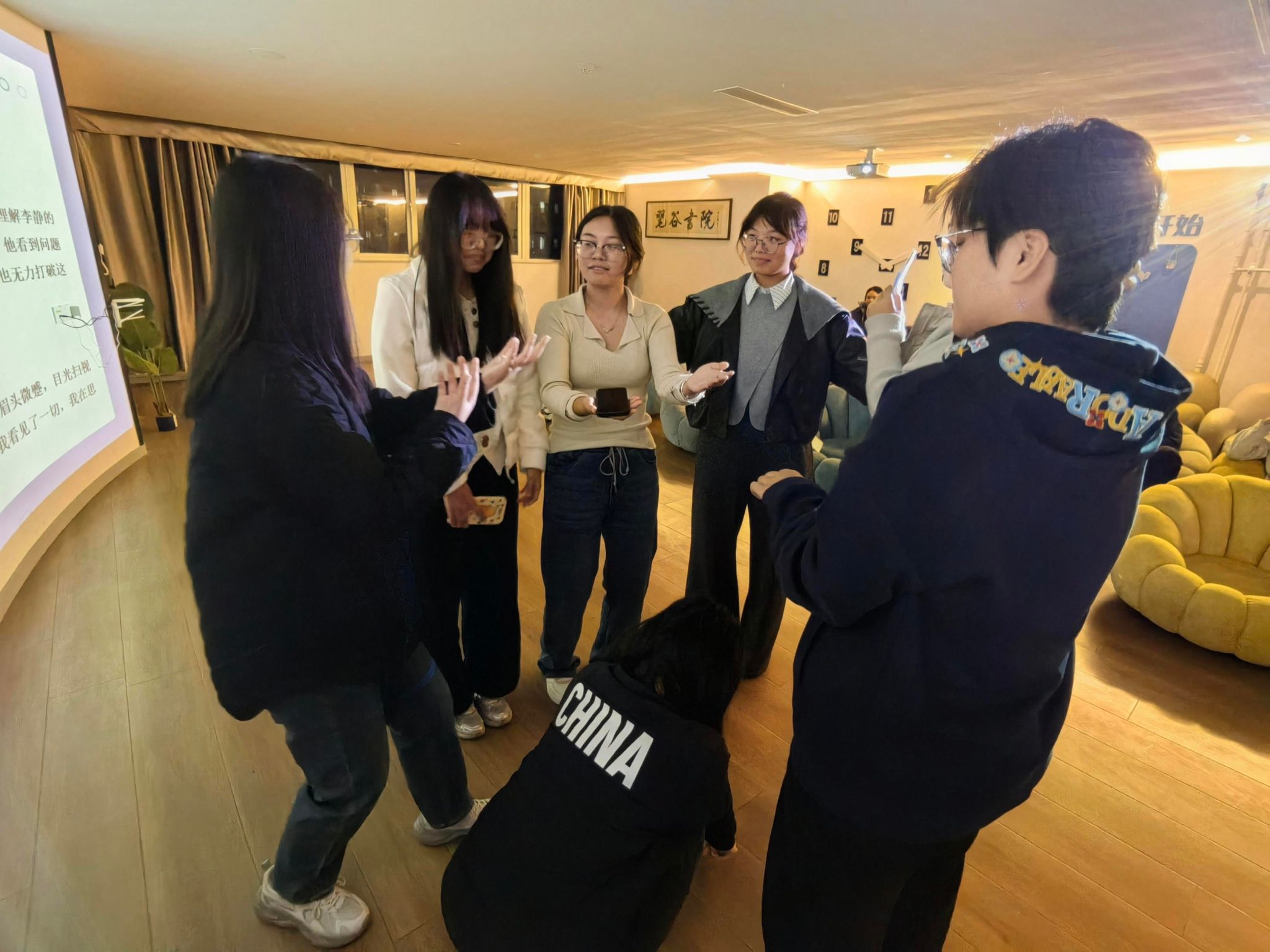 以“寓见你我,共赴心程”为主题,10月面向多个宿舍开展了一场别开生面的人际心理雕塑团体辅导。活动引导宿舍成员通过非语言的身体姿态、相对位置与距离,具象化演绎宿舍中的互动模式,将那些难以言说的情绪、期待与边界感,以生动而直观的“立体画卷”呈现于彼此眼前。在这一过程中,老师适时点拨,带领大家观察、感受与反思,不仅深化了对自我与他人的理解,更在无声的默契与共鸣中,学习调整相处姿态,主动构建彼此尊重、情绪相通的宿舍关系,真正搭建起一座通往和谐共处的心理桥梁。