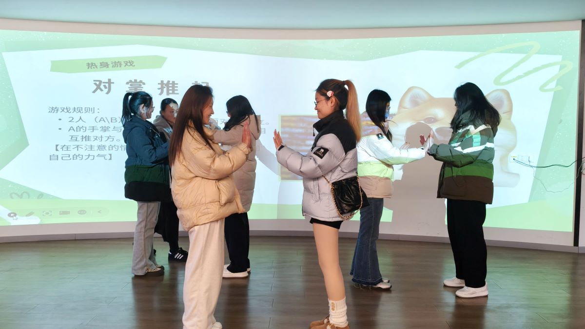 11月21日,古田老师在毣谷书院2F故事·“时间”内举办了“共塑心家·相伴成长”宿舍心理团辅活动。活动从“对掌推手”“打开双手”等热身游戏开始,引导同学们体会人际互动中的张力与松弛,理解适时退让与灵活沟通在化解矛盾中的积极作用。