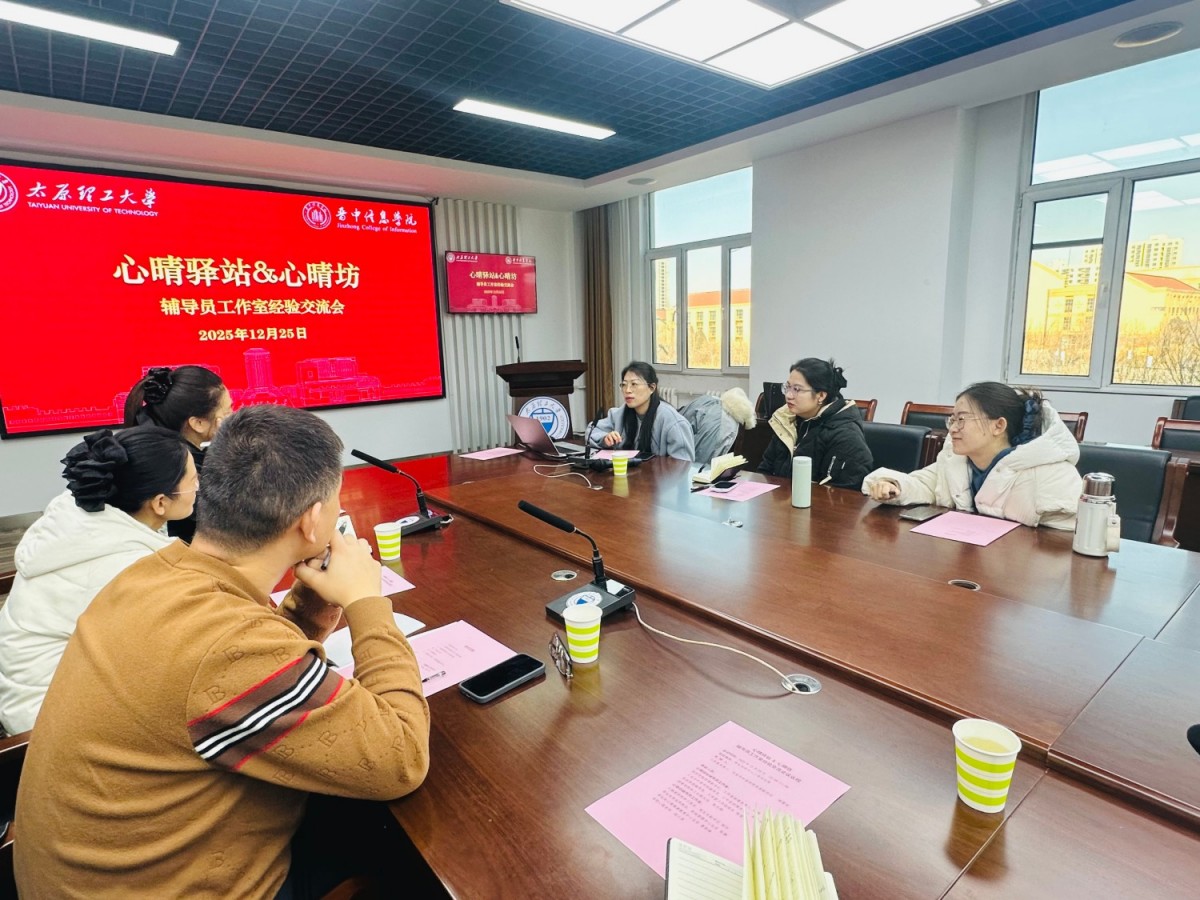 为深化辅导员工作室内涵建设,拓展工作思路与实施路径,12月25日,我校“心晴坊”辅导员工作室主持人郭杰老师率团队成员一行四人,赴太原理工大学“心晴驿站”辅导员工作室开展专题学习与交流。