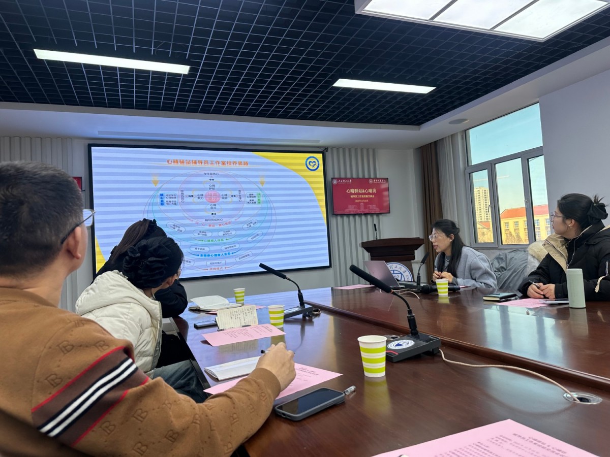 随后,郭杰老师介绍了“心晴坊”工作室的整体运行机制与阶段性核心成果;学生处学生科科长张静老师分享了在团队凝聚力建设方面的实践与思考;心理健康教育中心主任景彩峰老师则回顾了研究主题的演进脉络:从早期聚焦“心理问题早期发现与干预机制”,逐步发展为结合学校“完满人格”特色,构建个性化学生人格成长档案体系,体现了工作内容向系统化、特色化的纵深拓展。