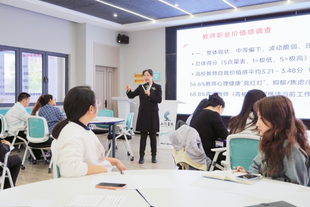 培训伊始,教师职业价值感调查数据分析直观呈现,清晰地折射着高校教师的典型心理困境,李军兰老师从职业价值的核心概念与基本构成入手,先行为辅导员们搭建起系统的理论框架,重点阐述教师的自我价值,他表示“从心理学视角来看,教师的自我价值本质是在从事教育教学工作的过程中,实现自身的心理成长、人格完善与自我实现,以满足自身需求”希望辅导员们能够在育人道路上收获职业成就感、幸福感与归属感。