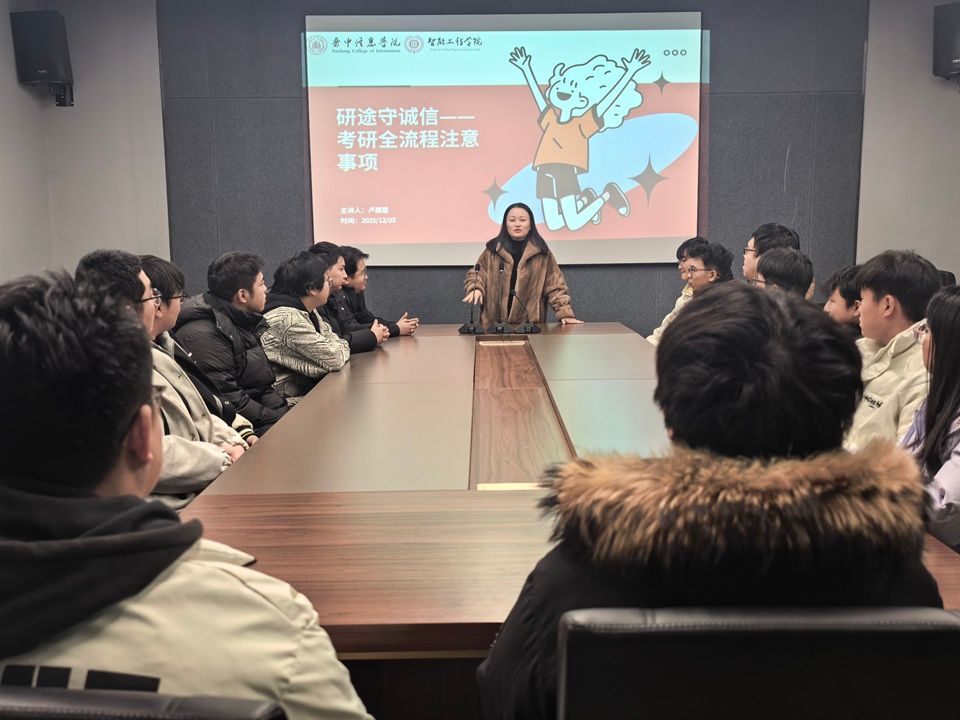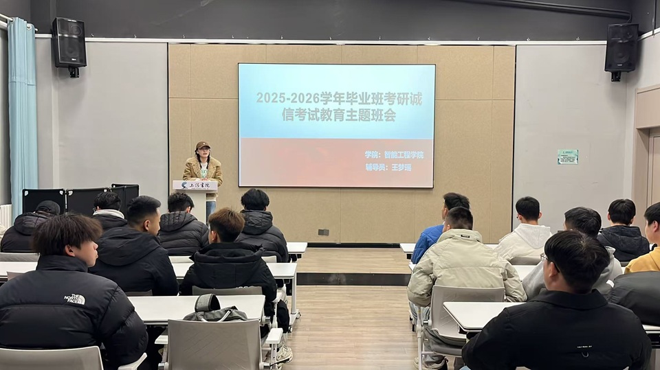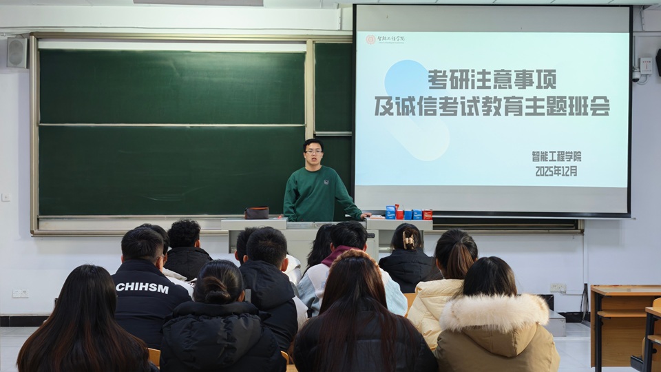 为进一步强化学生诚信应试意识,营造优良备考氛围,2025年12月3日—9日,智能工程学院2026届毕业生辅导员开展考研诚信考试教育主题班会,在2026年全国硕士研究生统一招生考试来临之际,帮助学生明确考试纪律要求,引导学生以平和健康的心态面对考试,为考研学子保驾护航。