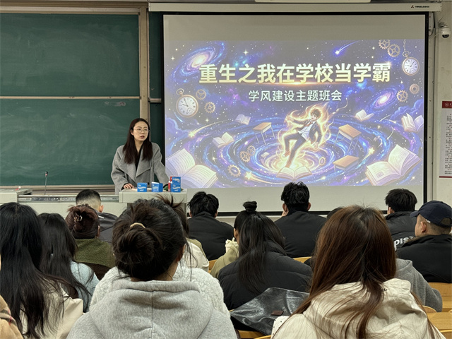 2026年3月20日,为进一步加强班级学风建设,激发学生学习内驱力,引导同学们树立积极向上的学习态度,大健康学院辅导员温少喆组织开展了以“重生之我在学校当学霸”为主题的创意班会活动。