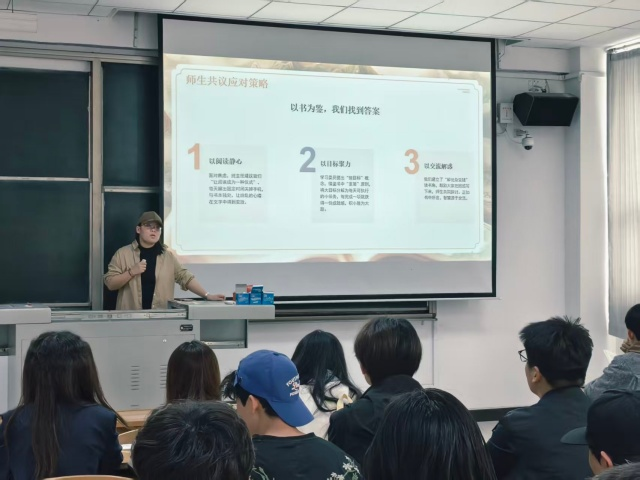 在“如何以书香静心、以目标聚力”的师生探讨环节,辅导员引导同学们认识到:阅读不仅是获取知识的途径,更是沉淀内心、涵养气质的方式;目标不仅是奋斗的方向,更是凝聚班级合力、激发个人潜能的动力源泉。大家共同制定了班级阅读计划和学风公约,明确了新学期的学习目标与行动路径。