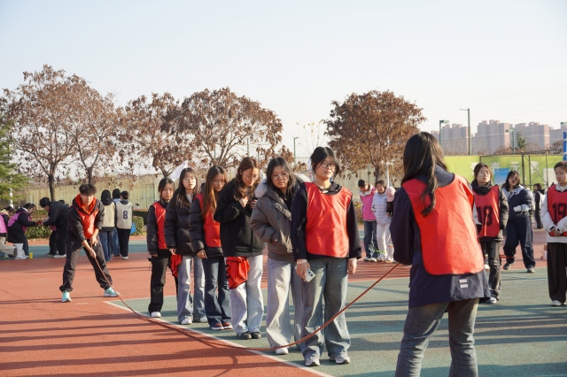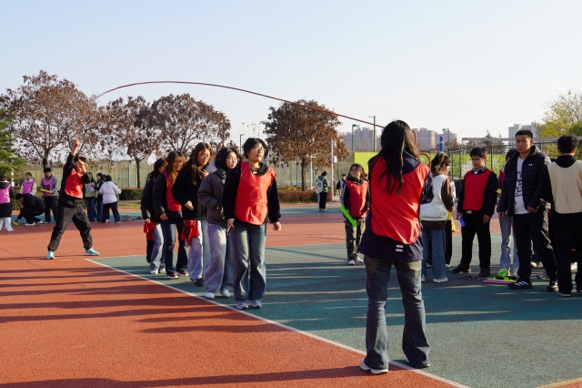 夕阳西斜时,“大河之舞” 的大绳已然翻飞如虹。体验官们带领学员们做着热身运动,伸展、跳跃、活动关节,每一个动作都充满活力。当学员们依次跃入绳中,他们便站在绳旁大声计数,“1、2、3…… 加油!再坚持一下!”清脆的计数声与绳拍地面的节奏交织,汇成最动听的夏日乐章。最后的“激情节拍”环节,体验官们与学员们手拉手围成圆圈,“我们是最棒团队”的呐喊声从轻声试探到响彻云霄,每一次击掌、每一次跳跃,都将团队的凝聚力推向顶峰,体验官们的脸颊因激动而泛红,心中的责任感与归属感在此刻达到顶点。