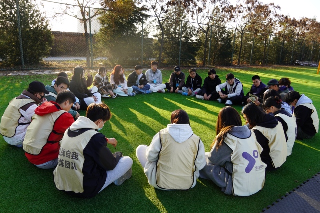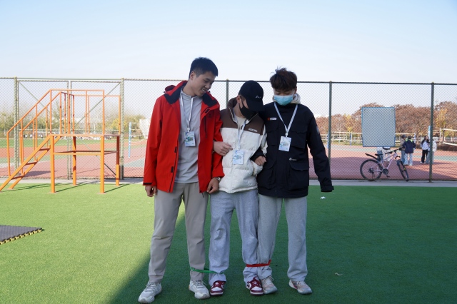“蛟龙出海”无疑是最具挑战的环节,体验官们提前逐一审视绑脚带的松紧度,指尖划过每一个卡扣时都带着郑重的使命感。项目开始后,他们始终侧身守护在队伍两侧,目光如炬地关注着每一位学员的脚步,“左右左!跟上前面的节奏,别慌!”当有学员不慎摔倒,体验官们立刻俯身搀扶,一边帮着整理绑带,一边轻声鼓励:“没关系,咱们慢慢赶,团队不会丢下你!”看着学员们相互搭着肩膀,从跌跌撞撞逐渐变得步调一致,那份永不言弃的韧劲,让体验官们深深懂得,所谓领导力,正是这份默默守护与坚定陪伴。