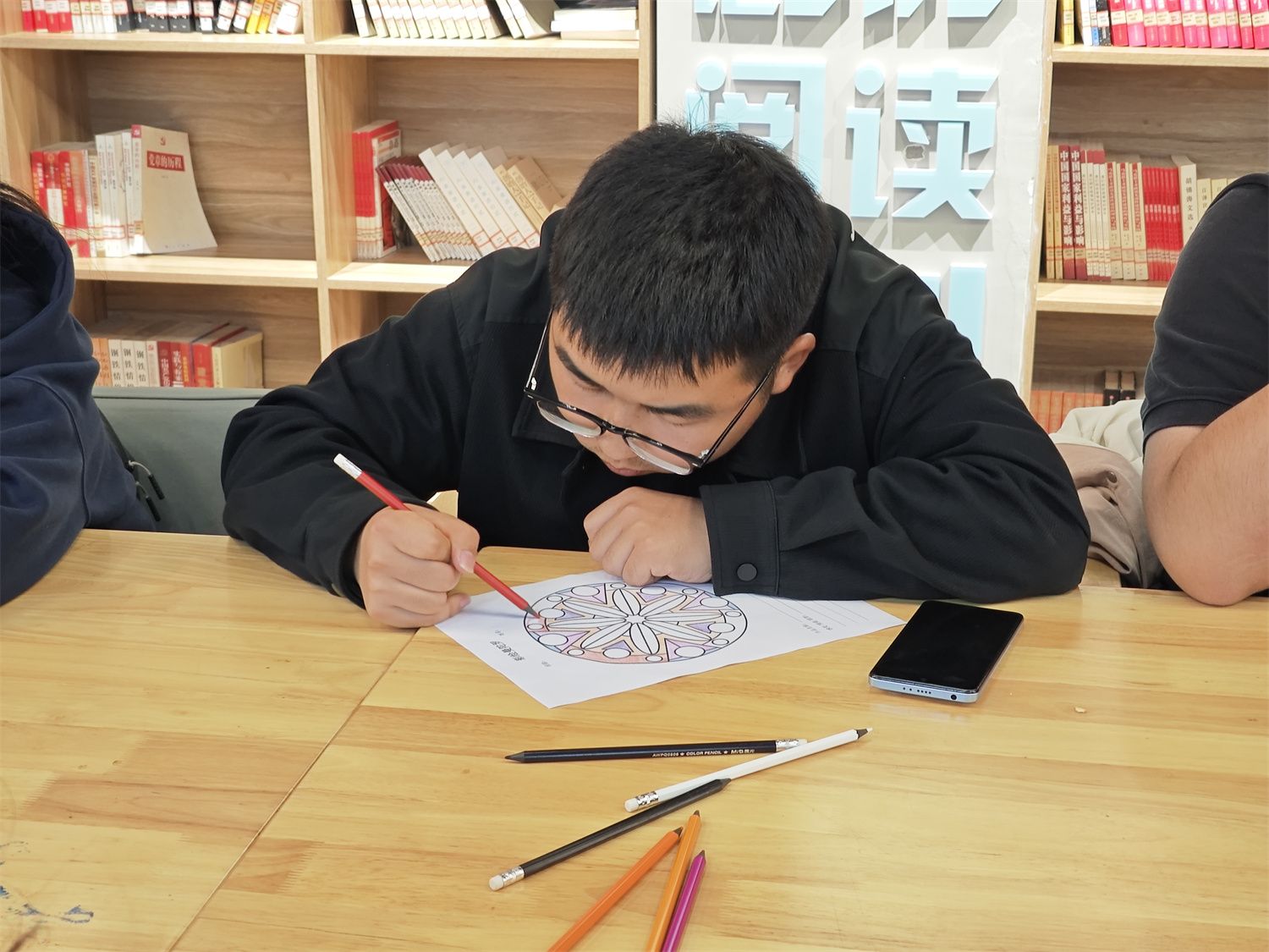 为探索艺术疗愈与心理关怀的融合路径,帮助学生缓解学习生活压力、构建健康心理状态,9月26日,大健康学院心理专员王雪丽老师在上河书院106览舟·大咖书屋开展“以画为媒,绘心解压”心理主题活动,旨在在曼陀罗绘画与舒缓音乐的双重陪伴下,开启沉浸式心灵解压之旅。