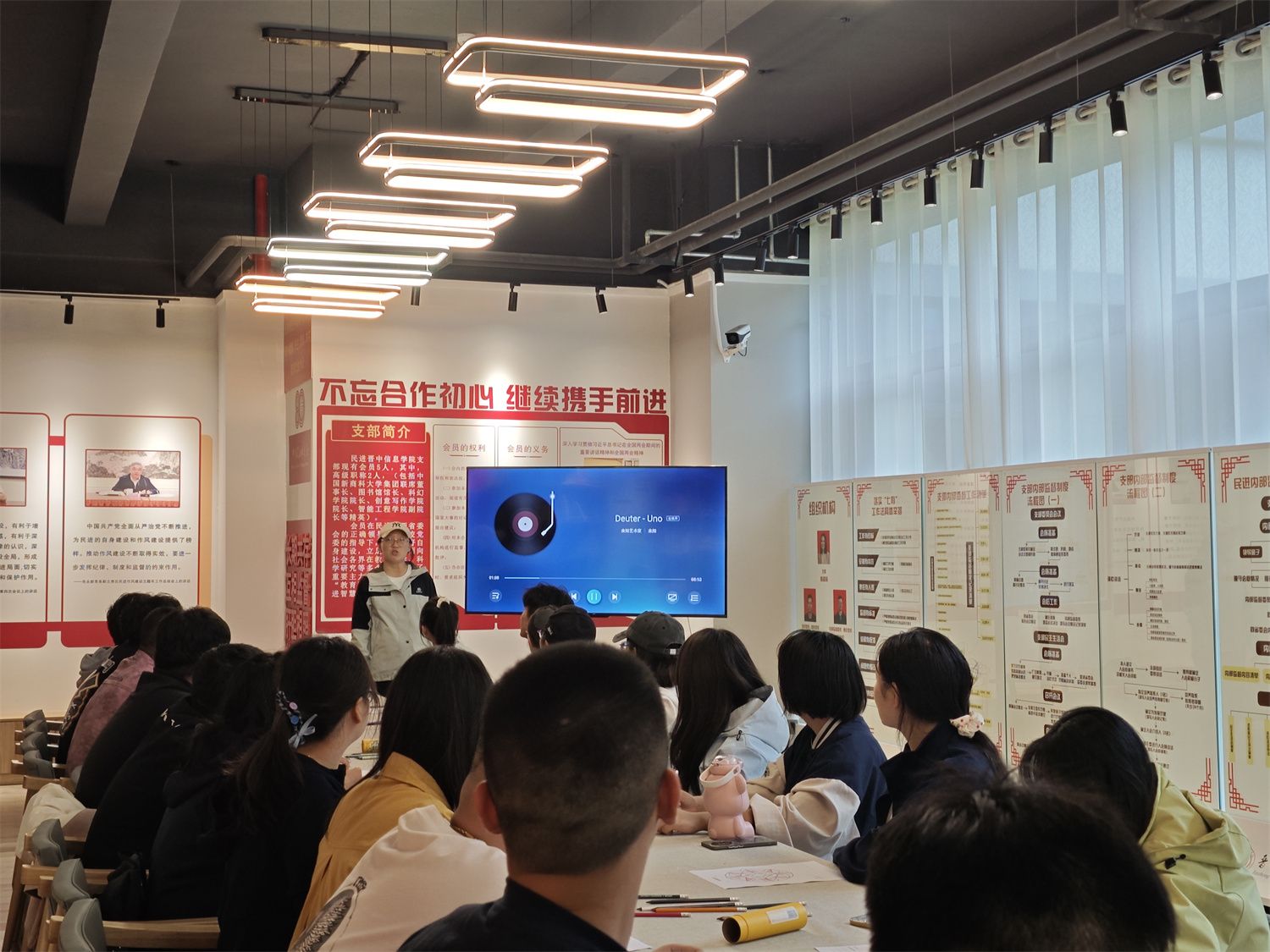 “平时学习压力大,心里总堵得慌,今天听着音乐画曼陀罗,不知不觉把烦躁‘画’了出去,看着作品整个人都轻松了。”一名参与学生的分享,道出了活动的核心价值。创作结束后,“情绪分享角”成为学生交流心得的平台,轻柔音乐相伴下,大家畅聊创作感受与情绪变化,进一步深化疗愈效果。