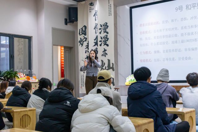 你有没有想过,为什么同一件事,不同的人反应会那么不一样?11月7日下午,艺术传媒学院在上河书院206“竹林·围炉夜话”举办了一场关于“人格成长”的培训。心理专员冯亚军老师担任主讲,带同学们一起探索人格的奥秘,学习如何更好地与人相处。