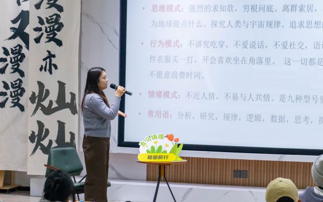 冯老师进一步引导大家思考人际关系的核心——“爱的频率”。她指出,如2号助人型通过付出表达爱,5号思考型习惯用深思传递关怀,爱的方式本就多样。真正的智慧不在于一味付出,而在于能否精准调频,以对方能接收的方式传递温暖。这让许多同学意识到,理解人格差异,是化解亲密关系与人际矛盾的金钥匙。