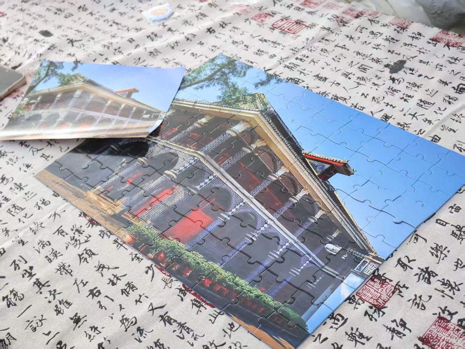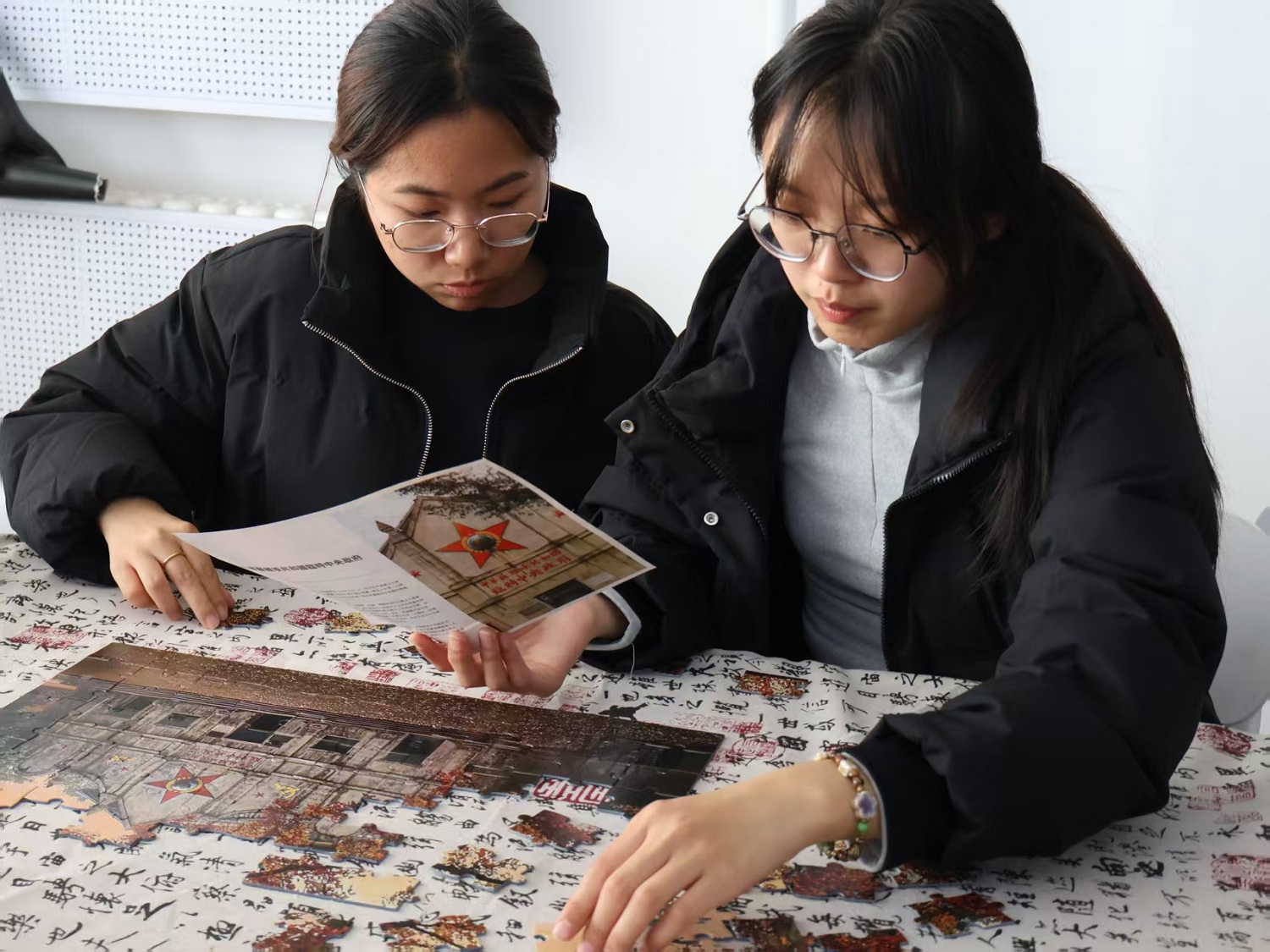 活动开场的拼图竞速赛瞬间点燃全场热情。各小组领取的拼图印着天安门、中国地图等熟悉图案,没有严肃的任务要求,只有并肩作战的快乐。学生党员主动带头,组长快速分工,组员们有的分拣碎片、有的勾勒轮廓,指尖翻飞间,原本零散的拼块逐渐拼凑成完整画面。现场没有紧绷的竞争感,取而代之的是“快帮我找找这块的位置”“这边轮廓好像对不上”的互助声。当一幅幅拼图完整呈现时,大家击掌欢呼,不仅享受了成功的喜悦,更在协作中体会到“1+1>2”的温暖。