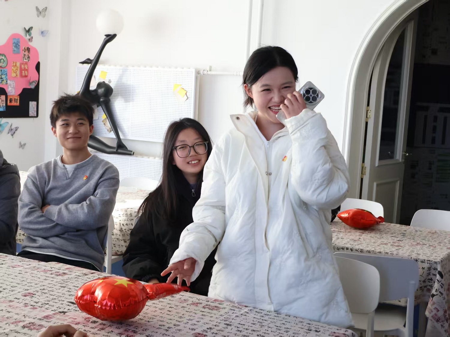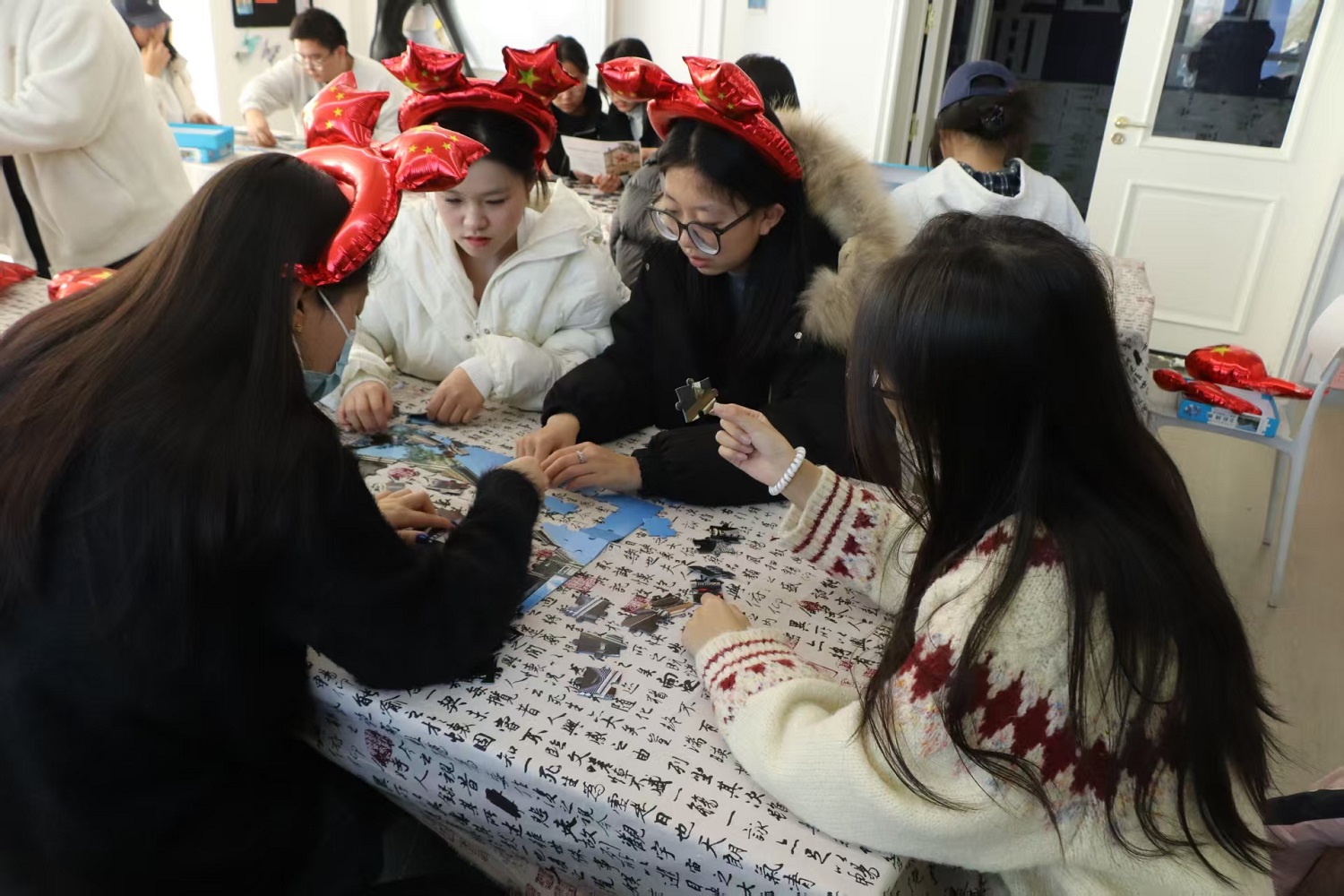 活动尾声全体成员手持小红旗与拼图成品合影,镜头下的笑容灿烂而真挚。此次活动以趣味互动为桥梁,将爱国情怀、情绪释放与心理疏导巧妙融合,让同学们在游戏中缓解了学业生活压力,又在互助中增进了同窗情谊。未来淬炼商学院・国际商学院将持续创新心理育人形式,打造更多趣味十足、温暖有爱的活动,让每一位学子都能在轻松氛围中收获成长,以饱满心态奔赴美好未来!