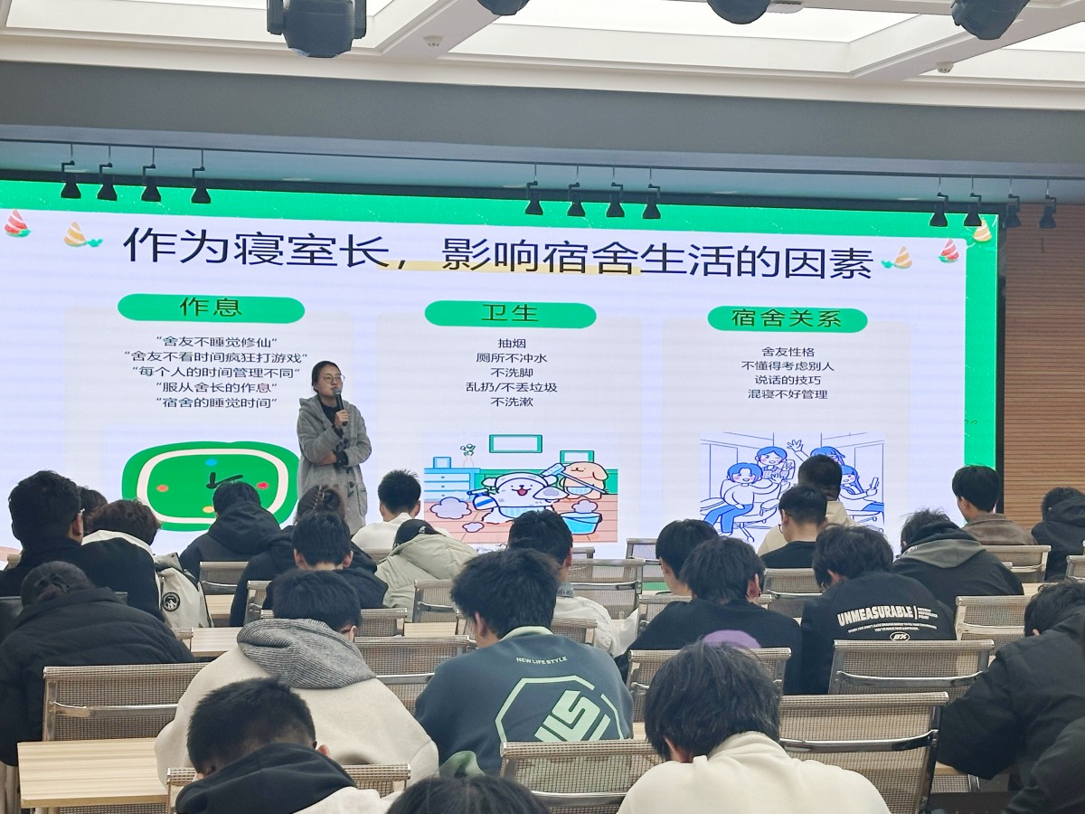 答疑环节中,杨鸿鹏老师针对宿舍长提出的“如何区分正常情绪波动与需专业干预问题”“舍友拒绝沟通时怎样打破僵局”等困惑,结合心理学原理给出具体建议,着重强调宿舍长需聚焦“支持者+衔接者”角色。不少宿舍长边听边记,认真记录“心理中心预约方式”“辅导员反馈路径”“紧急情况处理流程”等关键信息。“以前总担心帮不上忙反而添乱,现在有了方法和路径,我更有信心做好宿舍的‘心理守护者’了。”25级智能制造专业宿舍长赵同学说道。