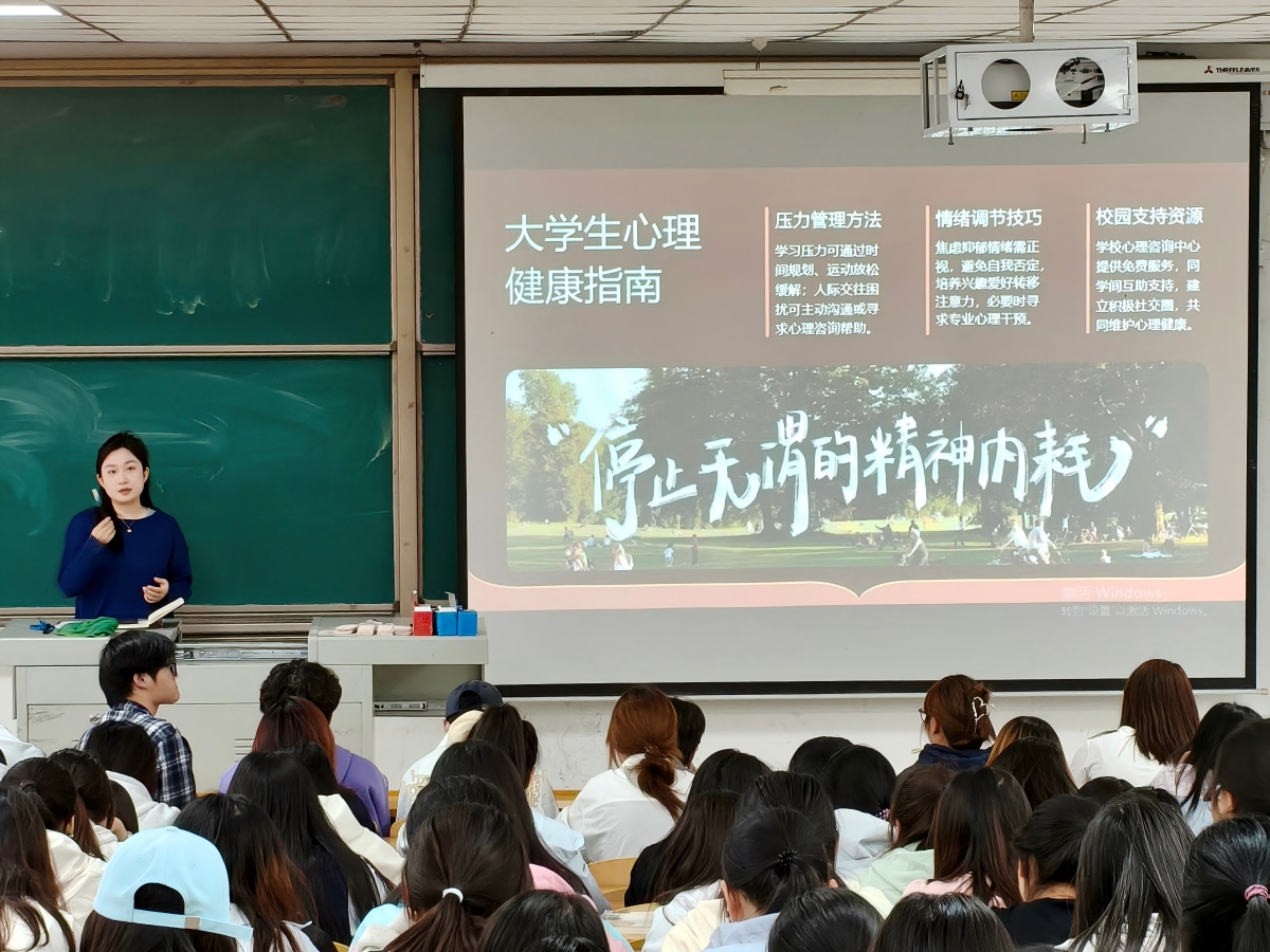 为持续筑牢大学生心理健康防线,商务英语学院伦新秀老师聚焦大学生常见压力源与“空心病”问题,通过深度讲解与暖心互动,引导学生正视内心迷茫与情绪内耗,帮助大家找到价值归属与行动力,重建积极生活状态。裴晓雅老师、郭凯英老师共同围绕生命安全教育开展专题引导,以鲜活案例传递生命意义与责任担当,教会学生敬畏生命、关爱自我,提升危机应对与自我保护意识。姚雅璇老师以“停止无谓的精神内耗”为主题,为大学生带来实用心理健康指南,分享情绪觉察、心态调整、行动破局等方法,助力大家告别过度纠结与自我消耗,以轻盈心态拥抱校园生活。本次系列心理主题班会,贴合学生实际需求,用专业与温暖为心灵护航。