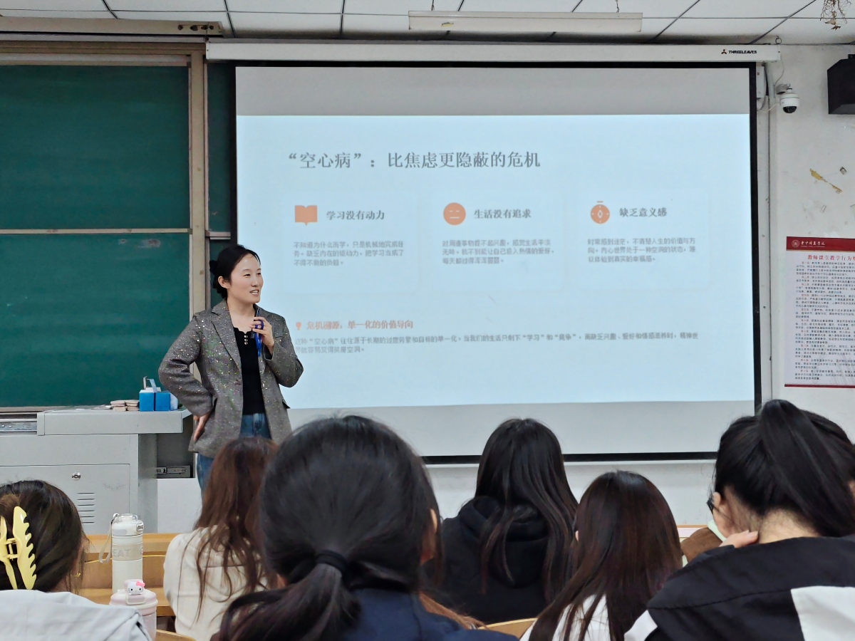 为持续筑牢学生心理健康防线,精准回应不同成长阶段的心理需求,淬炼商学院辅导员于4月开展系列心理主题班会,以专业引导与暖心陪伴赋能学子成长。李苓芝老师以“为心松绑,拒绝内耗”为主题,聚焦新生心理内耗与情绪焦虑,从情绪管理、认知调整等维度提供抗内耗策略;赵敬宇老师以“告别拖延”为主题,深度剖析拖延的心理与行为成因,通过拆解目标与科学时间规划等方法,帮助学生激活内在学习动力;徐爽老师聚焦准毕业生核心困扰,结合就业形势与求职误区,讲解就业心态调适、自我认知定位与求职准备规划等内容,引导学生正视焦虑、客观评估优势,树立理性择业观。四月系列班会分层分类、精准施策,有效帮助学生缓解内耗、告别拖延、破解就业迷茫,学院将持续深耕心理健康教育,以更丰富的形式与更贴心的服务,为学子心理健康保驾护航。