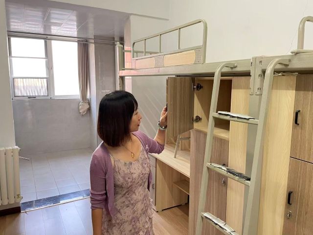 辅导员们对每间新生宿舍的门窗牢固性、桌椅完好度、照明设施等进行了逐一检查,确保所有设施均可正常使用。同时,老师们还重点查看了卫生间、阳台等区域的清洁卫生情况,并对存在的问题进行记录和报修,为新生打造一个温馨舒适的“新家”。