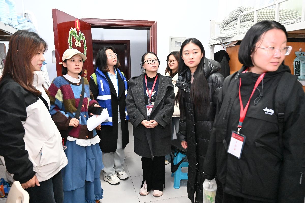 本次检查覆盖全校所有学生公寓楼, 旨在全面排查学生宿舍中存在的各类安全风险与卫生问题,引导学生培养良好的生活习惯,积极参与到星级宿舍评选的行列中,共同维护学生公寓集体生活的秩序与品质。