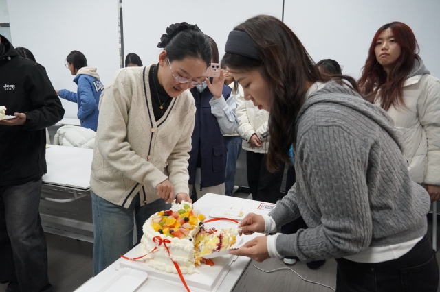 惊喜满满的感恩卡片与生日祝福环节,将现场氛围推向高潮。同学们提笔写下心里话,或是感恩资助的雪中送炭,或是记录受助后参与学科竞赛的成长蜕变,或是立下考研上岸的奋斗目标。卡片上的寥寥数语,满是真挚的暖意。工作人员还悄悄为当月过生日的受助学子准备了定制蛋糕,当生日歌响起,寿星们闭眼许愿,老师们送上暖心寄语,舌尖的甜意与心底的温情交织,幸福感瞬间拉满。