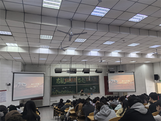 活动伊始,暖场环节以《飞驰人生》经典混剪视频开场,短短五分钟内,影片中追梦坚守、百折不挠的画面片段层层铺展,瞬间点燃现场青春热血。辅导员杨永华以影片为喻,生动点明大三是人生赛道的关键弯道,职业规划是前行的行车路线,精准戳中大三学生职业规划痛点,顺势引出活动主题,为活动奠定奋进的基调。
