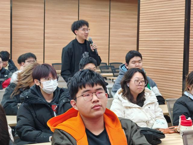 活动现场,三大趣味环节火力全开,欢乐与精彩持续轰炸!在“东问西答盲盒游戏大挑战”里,关于梦想、坚持、挑战的问题像调皮的小精灵不断跳出,同学们脑洞“biu”地打开,妙趣横生地作答,在轻松氛围中探索内心想法。