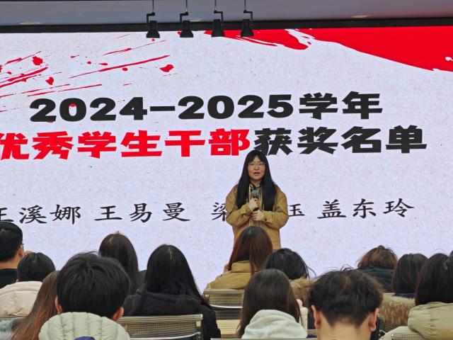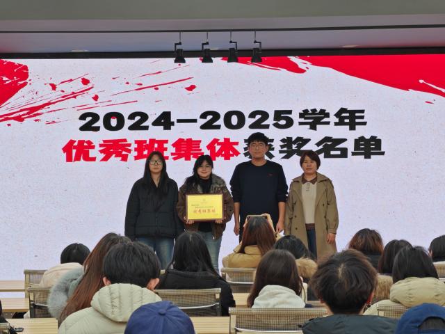 趣味互动的欢乐余温还未散去,现场就迎来了超有仪式感的颁奖环节!刘亚萍老师依次为2024-2025学年奖学金获得者、优秀学生干部和优秀班集体颁发奖状,一张张红彤彤的奖状,不仅印刻着努力的汗水,更是满满的榜样力量buff拉满~优秀学生代表也登台分享独家成长秘籍,用真实的奋斗故事点燃大家的追梦热情,喊着一起以梦为马、奋力向前,让青春在拼搏里闪闪发光!