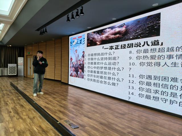 趣味互动和表彰结束后,刘亚萍辅导员化身“励志小天使”,结合《飞驰人生3》的经典台词和内核,跟同学们分享感悟。她用“生活总在熄火,但热爱总能重启”等金句,告诉大家青春不只是比输赢,坚守热爱、永不放弃才是王道。