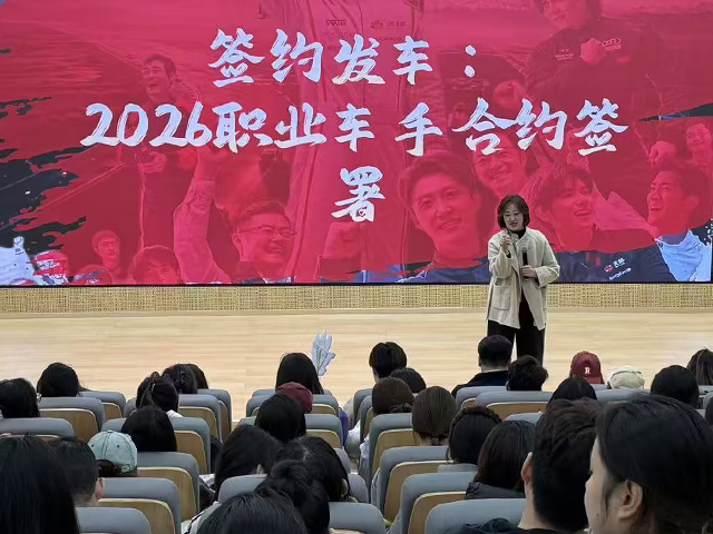 随后,全体同学郑重签署“职业车手”签约函,明确自我超越目标,制定专属学习与成长计划,并集体庄严宣誓:“我已阅读并知晓赛道风险,但我依然选择出发!”这份郑重承诺成为大家奔赴未来的正式“发车令”。