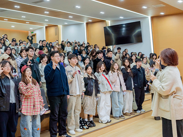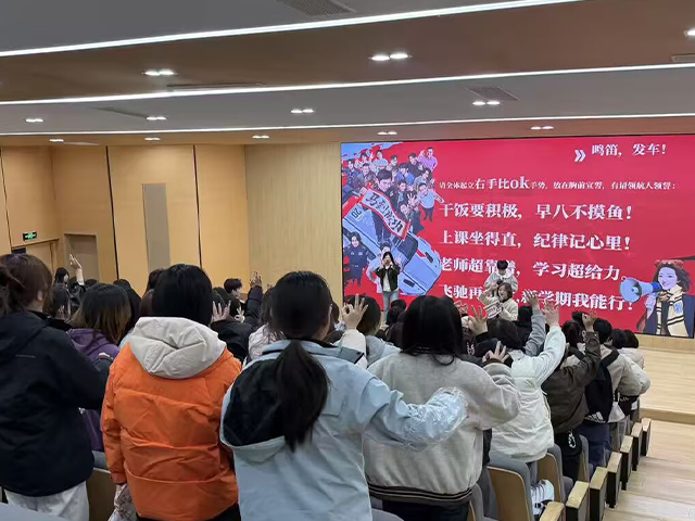 活动尾声,全体学生起立,亮出自信的“OK”手势,为新学期正式“鸣笛发车”。“新赛道,再出发!新学期,我能行!”的誓言铿锵有力、回荡全场。辅导员寄语道:“成长不必追赶他人的节奏,而是走好属于自己的旅程。设计本就是带着思考前行的专业,不必强求事事完美,只需守住心中热爱,按自己的节奏坚定向前。愿每一位设计学子,都能在专属赛道上,绽放独属于自己的光彩。”