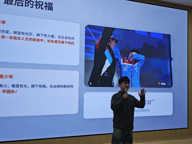 当屏幕上缓缓播放起由同学们自发剪辑的纪念短片——从入学的青涩到毕业前的从容,从深夜敲代码的专注到操场上的欢笑,两年的点滴让不少同学红了眼眶。杜老师轻声说道:“毕业不是终点,而是‘慢慢走’的起点,今天我们不谈焦虑,只谈如何在自己的时光里,从容地遇见光亮。