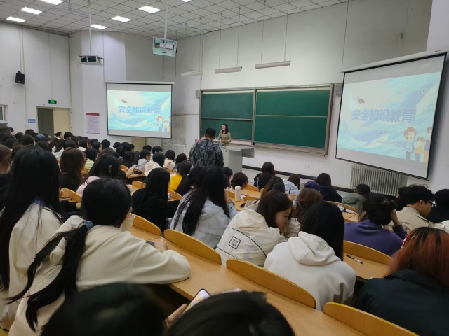 紧接着,弓思敏老师用幽默风趣的语言将同学们的注意力引导到日常安全教育上,如我们生活中常见的交通安全、消防安全、校园安全、网络安全和食品安全等,这些方面都存在我们平常应该注意的安全隐患。在讲解完我们面临的安全隐患后,弓思敏老师又为我们介绍了处理安全隐患的方法,有助于我们在安全隐患发生时更好地应对。