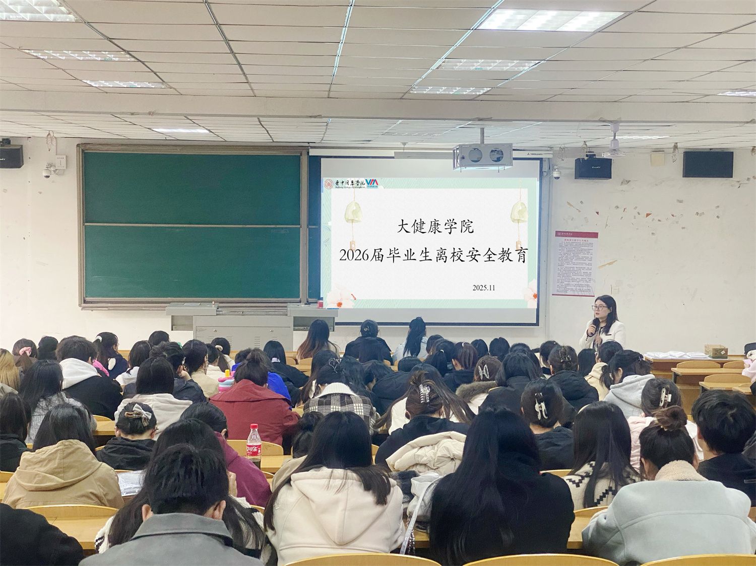 为切实加强毕业生离校期间安全管理,提高毕业生安全防范意识和自我保护能力,确保全体毕业生平安、文明、有序离校,11月13-17日,大健康学院辅导员刘悦老师、杨欣老师面向全体应届毕业生开展了以“毕业季,安全不‘毕业’”为主题的离校安全教育系列活动,为毕业生送上“安全大礼包”,助力他们顺利开启人生新征程。