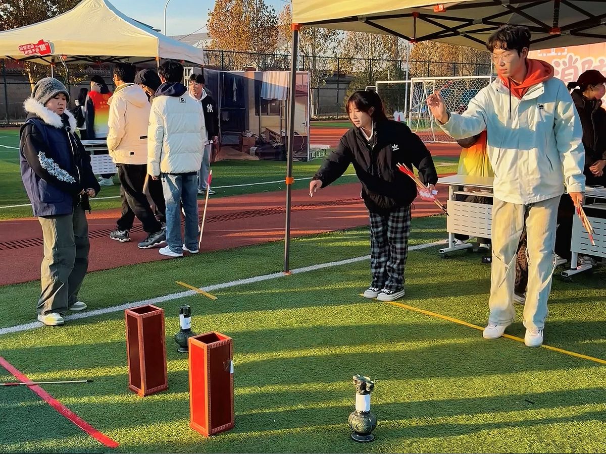 讲解结束后进入“投壶模拟灭火”环节,投壶上分别标注“干粉灭火”“二氧化碳灭火”“湿布覆盖”等灭火方式。机电2502班的队伍抽到“宿舍插线板起火”题目,经过短暂讨论,侯梁同学拿起箭瞄准标注“干粉灭火”的投壶,稳稳投中。“插线板起火不能用水,干粉灭火器能快速隔绝氧气灭火,刚才消防员讲的知识点派上用场了!”同学们兴奋的击掌,顺利获得关卡印章。