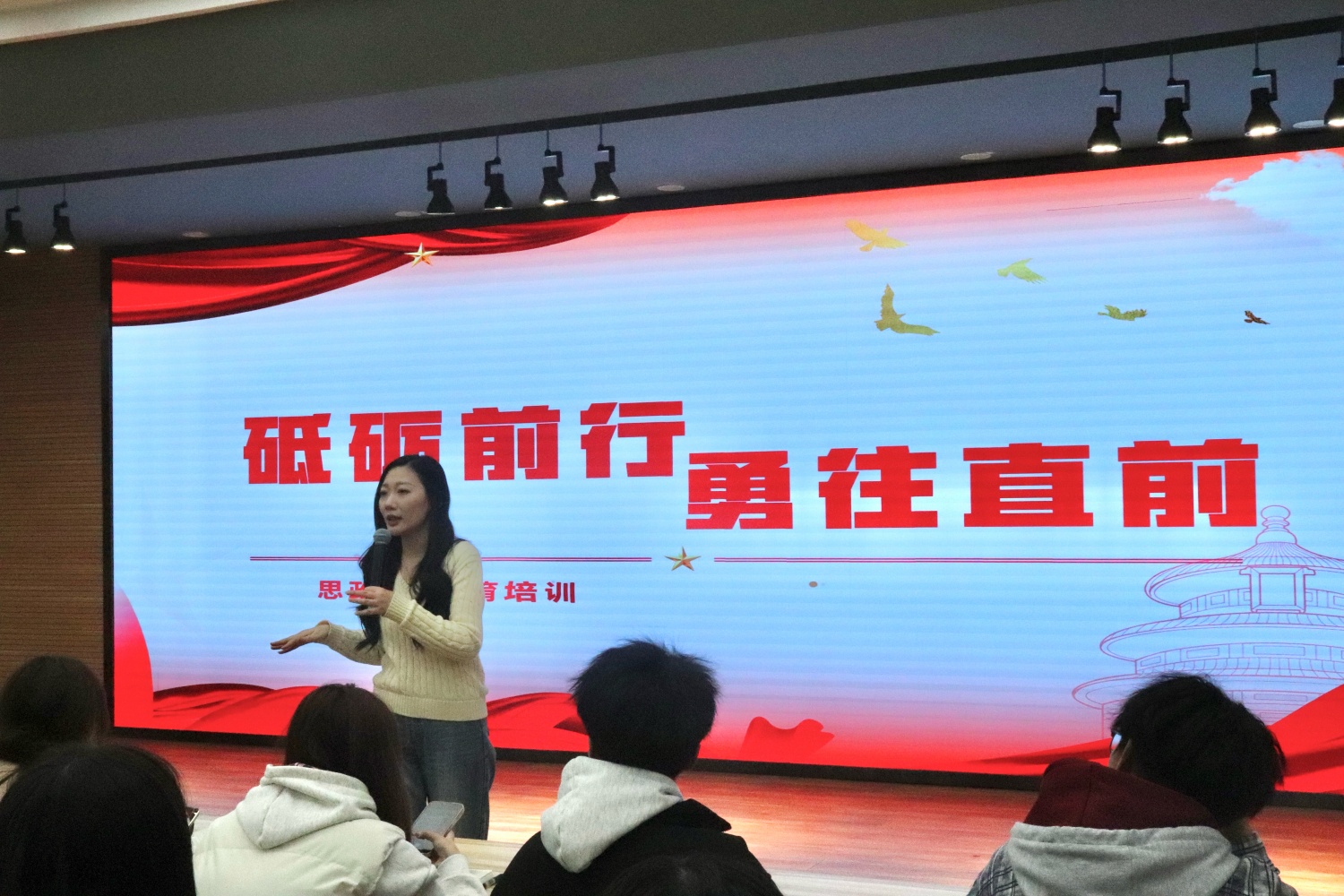 活动伊始,常佳老师在开场中指出,大学阶段是形成世界观、人生观和价值观的重要时期。她希望同学们通过持续学习,不断增强社会责任感和使命感,将个人发展融入时代进步的潮流中。常老师结合生动事例,阐释了树立正确理想的重要意义。她鼓励同学们培养积极向上的人生态度,勇于面对挑战,在专业学习和个人成长中不断提升思想素养。